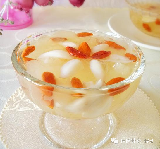 制法:枸杞子,百合加水适量,同煮稠烂,加入搅碎的鸡蛋黄和冰糖,再煮片刻即可。